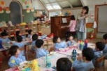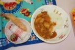 2011年04月15日(金) 一日保育 給食スタート 今日から一日保育。給食も始まりました。 今日のメニューは、「カレーライス、エビフライ、乳酸菌飲料、いちご」でした。 園児たちは元気よくあいさつをした後、先生やお友だちと楽しく給食の時間を過ごしました。 最近は、「食育」が重要視され、よく噛んで楽しく食べることや食べることへの感謝の気持ちの大切さが言われています。本園でも給食を大切な食育の機会ととらえ、子どもたちの「体や心の成長」に役立てることができればと考えています。