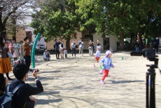 お家の方に日頃の園児たちの活動[朝のお並び、体力アップ(西幼サーキット)、日課、音感教育(ミュージックステップ)、心身統一(ききょう・さくら)、リレー(ききょう)など]をご覧いただきました。