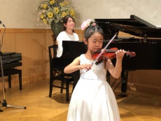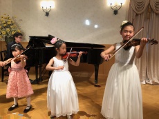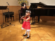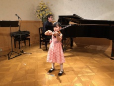 生徒のお友だちは、日頃のレッスンの成果を披露できました。「キラキラ星変奏曲」「第九シンフォニーより」「メヌエット第1番」「狩人の合唱」などをドレスアップして自信を持って演奏する姿がまぶしかったです。