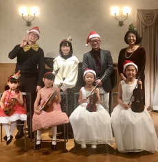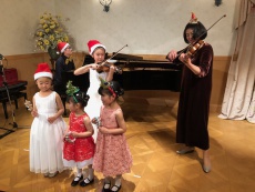 講師演奏「愛の夢」「タイスの瞑想曲」の後は、サプライズで会場のみんなといっしょにクリスマスソングを演奏し、一気にクリスマス気分になりました。会場もアットホームな場所で、演奏する子どもたちの表情や音色がよく伝わり、小さなバイオリニストたちの笑顔はとても可愛かったです。
