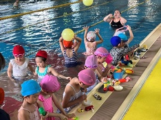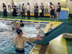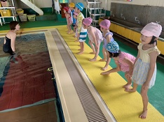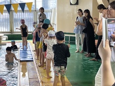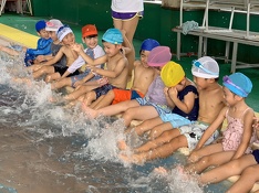 夏期保育の午前は、城西スイミングスクールのインストラクター指導によるスイミング教室でした。ききょう(年長)組やさくら(年中)組の園児たちは、能力別に分かれたクラスでそれぞれ水に親しみ、泳力向上につながる活動をしました。最終日は、保護者の方がプールサイドで参観しました。子どもたちは、おもちゃを使って遊ぶ時間もあり、水鉄砲で先生に水をかけたり、滑り台で遊んだりと子どもたちもおおはしゃぎでした!