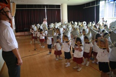 今日は、2学期の始業式がありました。みんなで園歌を歌った後、園長先生からは「2学期は敬老会や運動会、展覧会などたくさんの行事があります。毎日コツコツ努力することでワクワクした生活になります。2学期はぜひ、このコツコツを合い言葉にいろんな行事や活動に頑張り、心も体も頭も大きく成長しましょう」といったお話を子どもたちは真剣に聞いていました。