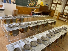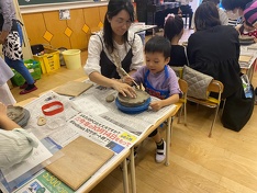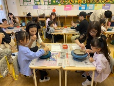 恒例の文化芸術親子体験教室は「陶芸」でした。お家の方といっしょに粘土をこねてお皿を完成しました。完成品は、焼き上がってからのお楽しみです!