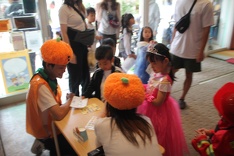 また、月末がハロウィンということもあり、当日いろんな仮装をして参加する子どもたちもいました。また、ハロウィンのコスチュームを着た先生からシールをもらいました。