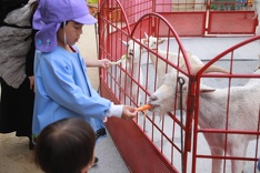 また、動物たちとのふれあいや餌やり体験もしました。ニンジン・白菜・キャベツ・リンゴなどを動物たちに恐る恐る餌やりする子もいれば怖がらずにできる子など、子どもたちの様子もさまざまで、それを見ていて微笑ましかったです。