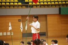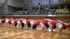 ききょう(年長)組は、太鼓の合図で円陣を作り、みんなで「おー!」の気合いを入れてから組み立て体操が始まりました。ゆずの『虹』の曲に合わせてさまざまな個人技やグループの技を発表し、ポーズが決まるたびに拍手が起こりました。二段ベッドや滑り台、ピラミッド、さらには「にしよう大橋」が完成すると大きな感動が会場を包み込みました。そして最後のピラミッドがピタリと決まると子どもたちは自信に満ちあふれた表情が感動的でした!まさに園児たち一人ひとりの集中して取り組む演技に、感動で涙を流す方も多数いらっしゃいました。