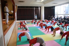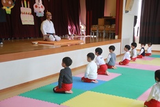 お家の方に日頃の園児たちの活動[朝のお並び、体力アップ(西幼サーキット)、日課、音感教育(ミュージックステップ)、心身統一(ききょう・さくら)、リレー(ききょう)など]をご覧いただきました。