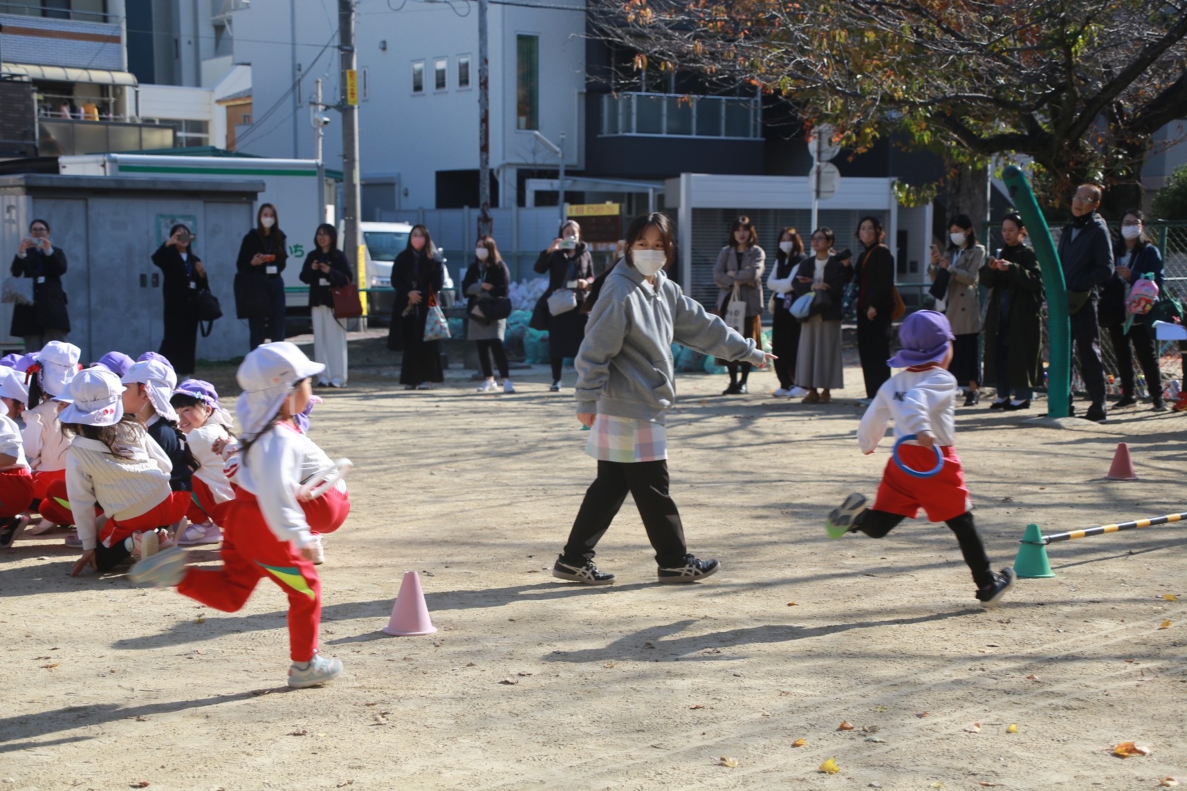 お家の方が参観しているから、頑張っているところやかっこいいところを見せようと張り切る子が多かったようです。この参観を通して園の教育・保育内容と子どもたちが取り組んでいるふだんの様子をご覧いただけたと思います。とりわけききょう組のリレーでは、グループ対抗とクラス対抗を行い、どちらも大いに盛り上がりました!