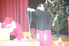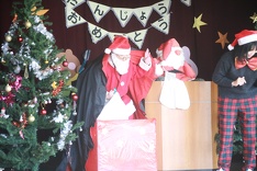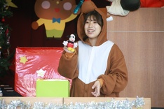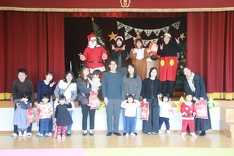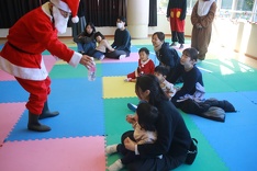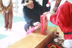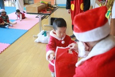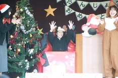 最初、副園長先生が登場し、魔法をかけると空の箱の中からサンタの人形が出てきました!そのサンタの人形を大きな赤い箱に入れると、サンタさんが出てきてお母様方から驚きの声があがりました。子どもたちは、大きな箱の中からサンタさんが出てきて、驚いたりちょっぴりおどおどしたりしているお友だちもいました。