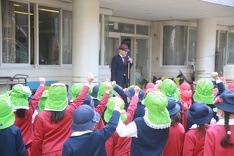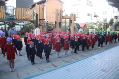 園歌を歌った後、園長先生からお話がありました。「元旦はお家の方にしっかりとお正月の挨拶ができましたか?毎日心身統一の黙想をしましたか?3学期は3ヶ月しかありませんが、仕上げと次の学年に向けての準備期間にもなります。その心構えを忘れずに毎日頑張りましょう。」との内容に子どもたちは元気よく返事しました。また、みんなで「3学期、そして今年1年頑張るぞ!おー!!」のかけ声をしたり、恒例の干支の確認もしたりしました。