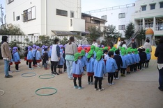 園長先生からは「今日は、みなさんには予告しないで訓練を行いました。突然のことで怖くなり泣いていたお友だちもいましたが、みんな落ち着いて避難できました。今から30年ほど前に阪神淡路大震災が起きました。1月17日の早朝、大きな揺れで家が潰れてその後大火事になりました。園長先生も1週間ほどボランティアに行きましたが、犠牲になった人たちの話を聞き辛かったことを覚えています。地震や災害が起きたとき、安全な場所を探してダンゴムシになる、落ち着いて逃げる、といったことが大切です。」というお話を真剣に聞いていました。