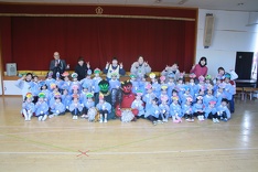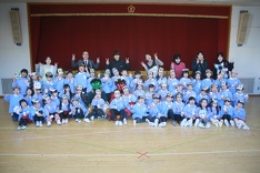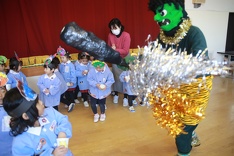 でも、子どもたちは泣きながらもみんなで協力して鬼を退治することができました。さすがききょう(年長)組のお友だちの果敢に立ち向かっていく姿をなど見ることができ、逞しさを感じました。最後は鬼たちと一緒に記念写真を撮りました。