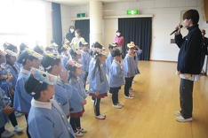 「鬼というのは『弱い心・悪い心・怠ける心』のことで、みんなの心の中にもいます。その鬼を退治するという意味もありますよ」という担任の先生のお話に元気よく「はい!」と答える園児の姿が、とても可愛かったです。