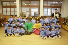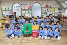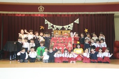 その後は、お内裏様とクラスごとに記念写真を撮りました。給食の時には白酒に見立てたカルピスを飲み、子どもたちのニコニコ笑顔がとても素敵でした。