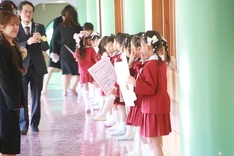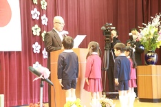 園長先生からは、名古屋市出身のシンガーソングライター藤田麻衣子さんの『手紙~愛するあなたへ~』の歌詞(一部)から、両親への感謝の気持ちを忘れずに生活してほしいといった内容の式辞でした。