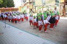 その後、きく(年少)とさくら(年中)・ききょう(年長)のお友だち同士が、互いに向き合って「よろしくお願いします」と挨拶をしました。