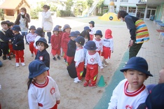 園長先生から「今日は西幼稚園のお友だちみんながそろいました。さくら(年中)・ききょう(年長)のお友だちが、きく(年少)のお友だちの手をつないで部屋まで連れていってくれたり、優しく接してくれたりして嬉しくなりました。しばらくはきくさんも泣くことが多いですが、親切にしてあげてくださいね」といったお話がありました。