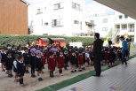 始業式で園長先生から「西幼稚園では皆さんが『明るい子・やさしい子・たくましい子』になることを願っています。小さなお友だちがたくさん入園したので、さくら(年中)・ききょう(年長)組のお友だちは、きく(年少)さんにいろんなことをやさしく教えてください。そして、お兄さんお姉さんとしてかっこいいお手本になってください。」などのお話があり、園児たちは真剣に聞いていました。