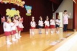6月生まれのお友だちの誕生会でした。9人のお友だちはみんなから祝福と拍手、歌「あめふり」のプレゼントをもらってニッコリ。ききょう(年長)組のお友だちは、お家の方からのメッセージを読み上げられるとさらに素敵な笑顔に!