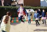 先週の金曜日が雨天だったため、今日に延期されたなわとび大会。さくら(年中)、ききょう(年長)のお友だちは、今まで練習してきた成果を発揮しようと、どの子もやる気満々、気合い十分!