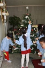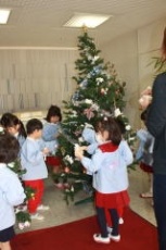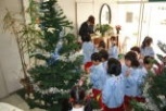 2010年12月02日(木) クリスマスツリー飾りつけ 今日は、ききょう(年長)組のお友だちがクリスマスツリー2本の飾りつけをしました。クリスマスソングのBGMが流れる中、園児たちは楽しそうに飾りつけをしました。 その後、みんなで「赤鼻のトナカイ」「あわてんぼうのサンタクロース」などの曲を元気よく歌い、幼稚園もクリスマス色になってきました。 よい子の園児たちにサンタさんからどんな素敵なプレゼントが届くかな?