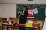 たんぽぽ教室で「クリスマス会」が開かれました。サンタさんのケーキを作るパネルシアターを楽しみ、みんなでサンタさんの帽子を作りました。その後、園長先生によるマジックショーがありました。