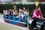 その後、プレゼントをもらったお友だちは、園庭でSLに乗り、ツリーの前で記念写真を撮りました。