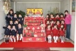 お土産の「ひなあられ」を手にした園児たちは、ニコニコ笑顔でした。