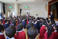 最初にみんなで園歌を歌い、みんなの元気な歌声がホールに響きました。園長先生からは「今年は5月1日から元号が変わります。「令和」と言います。元号のように新しい気持ちでこれから頑張りましょう。さて、昨日の入園式で60人の新しいお友だちが西幼稚園に入ってきました。明日から小さなお友だちが登園します。不安で泣いたりするお友だちもいるから、優しく接してあげてくださいね」というお話に、園児たちは「はい!」と元気よく返事をしました。