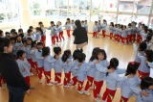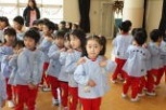 今日は「お別れ会」がありました。きく(年少)・さくら(年中)組のお友だちが、20日に卒園するききょう(年長)組のお兄さん・お姉さんたちといっしょに遊ぶ最後の会です。