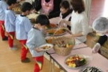 昼食は、みんなで「ビュッフェ形式」の会食でした。メニューは、ミニラーメン・巻き寿司・エビフライ・ハンバーグ・フルーツ・ゼリーなど、ふだんの給食では食べられない内容に子どもたちも大満足!!中には、何回もおかわりするお友だちもいました。