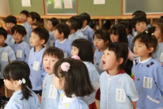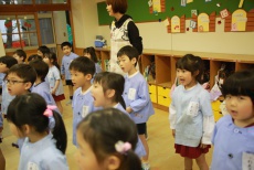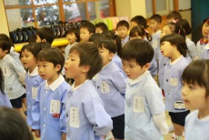 きく(年少)組は歌うことの楽しさを感じること、さくら(年中)、ききょう(年長)組では美しい頭声発声で歌い、特にききょうは二部合唱にも挑戦してお友だちとのハーモニーを楽しむことを目指します。