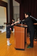第102回卒園式が行われました。名前を呼ばれたききょう(年長)組の園児たちは、元気に返事をして、修了証書を誇らしげに堂々とした態度で受け取りました。