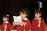 卒園児の皆さん、皆さんの頑張りを大いに期待しています。また、幼稚園に遊びに来てくださいね。